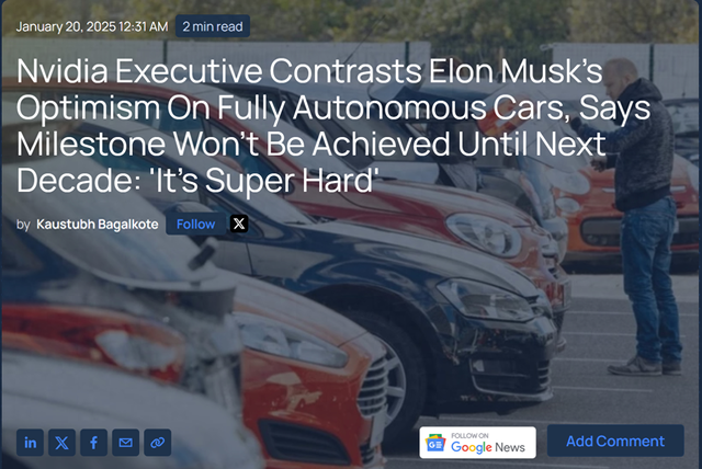 【环球网智驾玄虚报说念】1月20日音书,英伟达汽车业务副总裁阿里·卡尼(Ali Kani)近日在禁受媒体采访时暗意,透彻自动驾驶汽车在2030年前不太可能在大家说念路上全面参预使用。尽管当今部分汽车照旧在特定受控环境下竣事了有限的自动驾驶功能,但要竣事着实的自动驾驶,仍需在野心才智和时代上获取进一步阻滞。